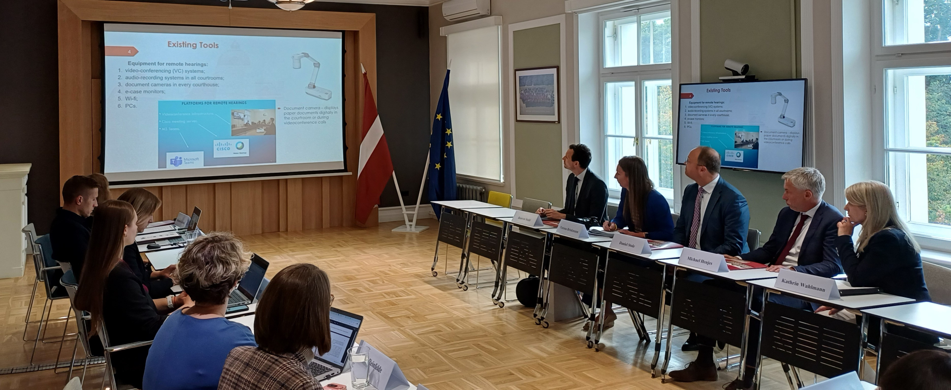 Šodien, 25. septembrī, pieredzes apmaiņas vizītē Rīgas apgabaltiesu apmeklēja delegācija no Vācijas Lejassaksijas federālās zemes, lai iepazītos ar Latvijas tiesu sistēmas digitalizācijas risinājumiem un inovatīvajām pieejām tiesvedības procesu efektivizēšanā.